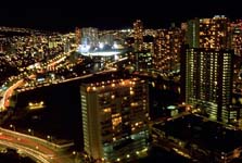 | ハワイのホテルの窓から、夜景を撮影。三脚がなかったの窓の手すりに固定して1/2秒のスローシャッターで撮影したのだが、やはり少しぶれている。 |