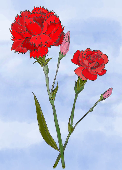 花弁は全部同一のべた塗でもよさそうだが、やはり、光の当たり方で陰影がある。