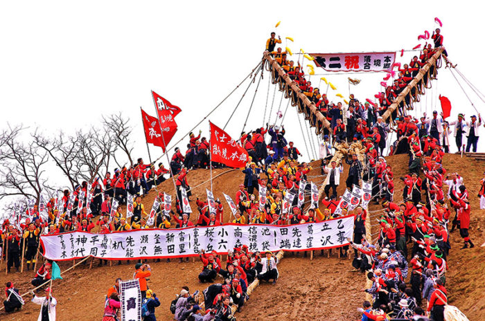 山から巨木を曳き出し、社殿の四隅に建てる勇壮な神事であり、柱そのものに神が宿ると信じられている。